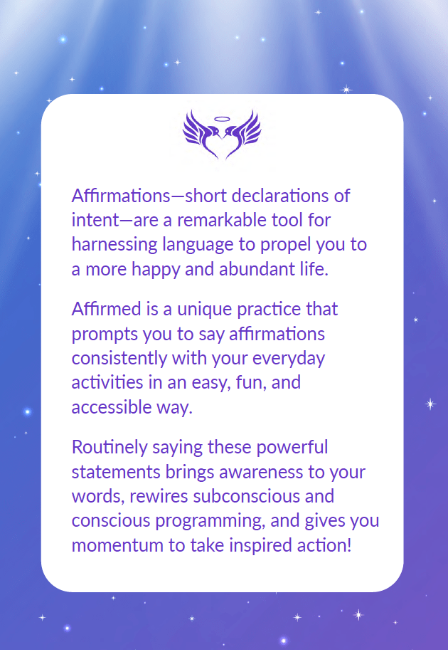 That’s why I created this healing practice that makes it easy to use affirmations in a powerful way to move you forward with inspired momentum.